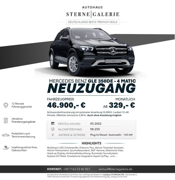 Mercedes-Benz GLE 350 de 4Matic Aut. Business *1.Hd,SoH 97,5%*